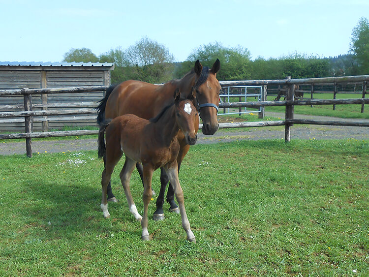 Chaque printemps, nos poulinières, sélectionnées au fil des ans, donnent naissance à une trentaine de poulains destinés à être vendus yearlings en ventes publiques.